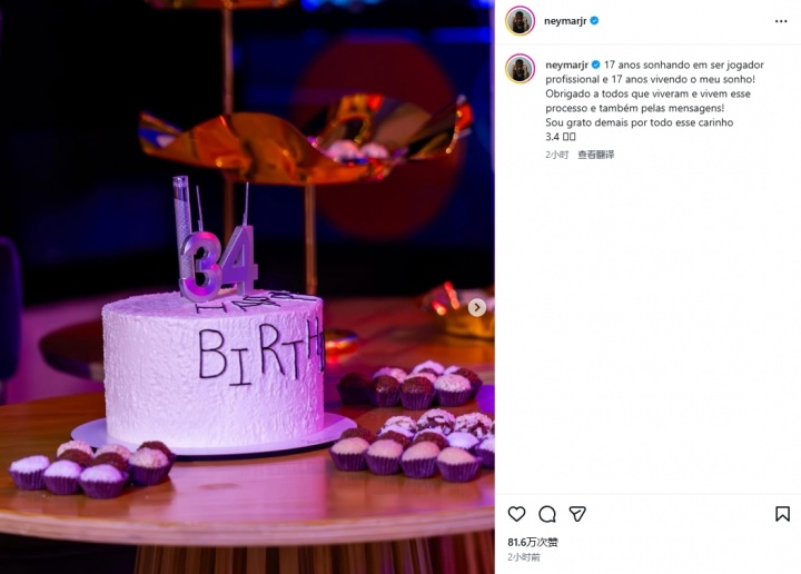 开云官网-34岁内马尔庆生:17年追逐梦想,17年在梦想中闯荡,感谢大家祝福